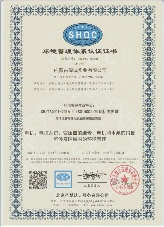 內蒙古緑誠實業有限公司于2014年4月成立,公司地址位于扎魯特旗扎哈淖爾工業園區東區?,F有辦公樓2700平方米,新型專業化生產維修車間5500平方米,我公司是與中國中車集團的襄陽中車電機技術有限公司技術合作成為現代化大型機電設備檢修公司及維修為一體的公司,贏得了各個企業的支持與信賴。